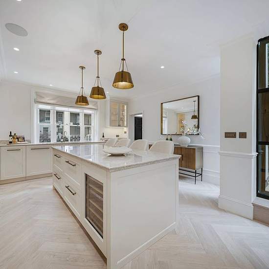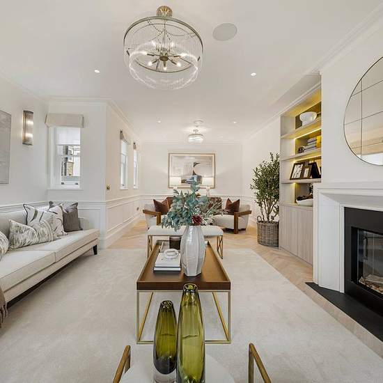Extending to 2,676 sq ft, this striking double-fronted property commands twice the width of a typical townhouse, offering a level of lateral generosity rarely found in urban living. The house harmonises period architectural detailing with sensitive contemporary interventions. Sash windows, oak herringbone parquet, panelled walls, and delicate cornicing are paired with a soft, neutral palette to create interiors of quiet refinement. Skylights and dual-aspect rooms ensure the house is exceptionally well-lit throughout, while underfloor heating...