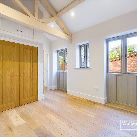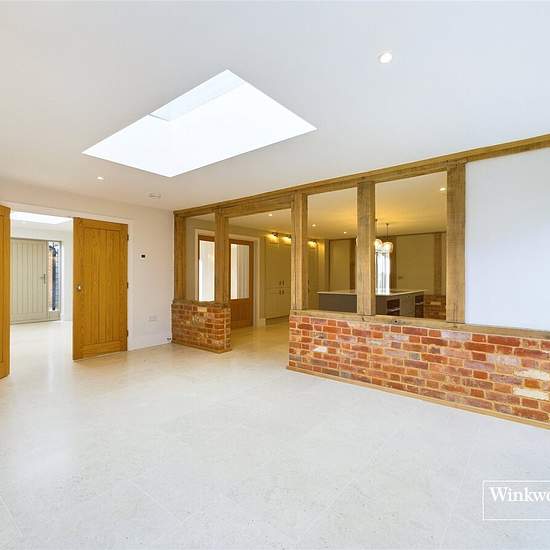 Ein außergewöhnliches, neues Haus mit 5–6 Schlafzimmern in dieser ruhigen, halbländlichen Lage, nur zwei Meilen von Twyford entfernt, mit seinem Bahnhof an der Elizabeth Line/Crossrail, die Reading mit der City of London und Canary Wharf verbindet. Bis ins Detail hochwertig fertiggestellt, liegt diese liebevoll umgebaute Scheune in herrlicher Umgebung an einer ruhigen Landstraße. Dieses einzigartige Haus erreicht man durch ein Tor mit fünf Querlatten auf eine großzügige Auffahrt mit einem doppelt ausgelegten Carport in Eichenrahmen und Stell...