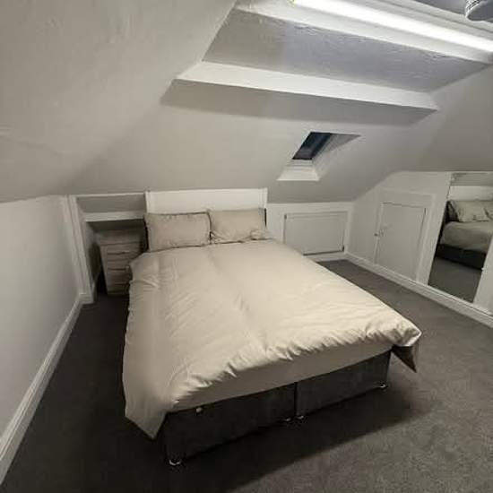 A double sized loft room available in Poole, BH15. Rate is £500 per month to account for being a loft room but size wise is great. This is not an en-suite. Property has been recently renovated and furniture has been unused so far. Shared bathroom and communal space, large garden and convenient location. 10 minute walk to Poole Hospital, town centre, train and bus station. All bills included, including Wifi and Council Tax & TV Licence. Perfect for a single professional. Please contact for a viewing as it has only just become available.