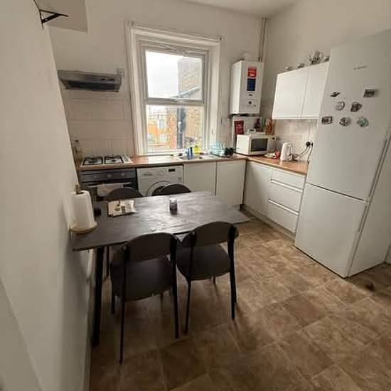 We have a bright double room available featuring a lovely pre-war mantlepiece, with an attached single room, perfect for an office or walk in wardrobe. We are looking for someone who is clean (and is willing to join the cleaning rota) and fairly sociable as you will be living with three housemates. Shared spaces include: kitchen, bathroom, toilet and balcony (with plans to get some outside furniture when the sun comes back out!) The flat has a bus stop right outside which can take you to the stations. Alternatively you can walk 10 mins to...