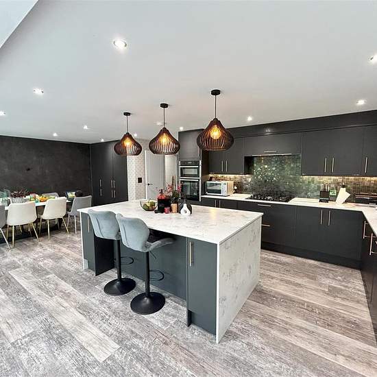 The striking five bedroom home set across three floors, commencing with an inviting entrance hall with an elegant style staircase. This sublime home enjoys plentiful family accommodation, it was recently remodelled throughout to provide open plan bright living areas which extend out to the patio, a study ,five bedrooms and four bathrooms. The kitchen is equipped to a fantastic specification incorporating Neff and Bosch appliances, with a breakfast station, and central island enhancing this sociable space. On the first floor there is three do...