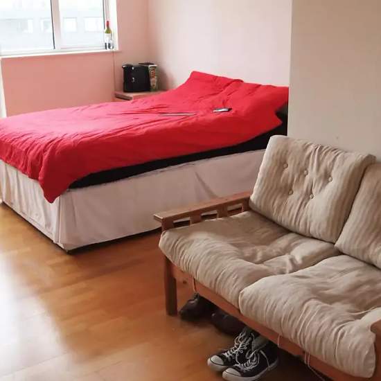 Bedroom 4 is equipped with a double bed and a heating unit. This room also has a chest of drawers, shelving and a standalone wardrobe. Bedroom 4 also has access to a balcony. This 4-bedroom house has multiple rooms for rent - something to fit all needs. The house has 3 storeys with the rooms spread over different floors, giving you the privacy you need. With polished wood floors and elegant carpeting, the house offers a very cozy atmosphere. The shared area is the fully equipped kitchen that is quite spacious and comes furnished with a dinin...