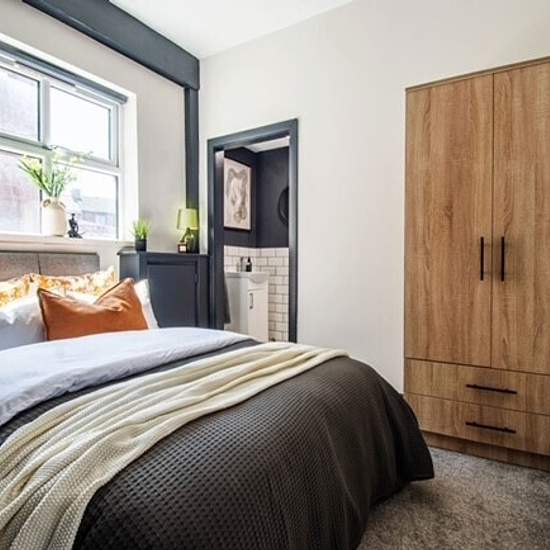 Zero Deposit Guarantee Available Property includes; Bedroom - Beautiful double bedroom neutrally decorated with carpet, furnished to a high standard including double bed and large wardrobe. Private Toilet - Fitted with WC and Sink, part tiled part decorated with chrome accessories Shared living space - The property offers modern living space consisting of open plan lounge/kitchen, the lounge area is neutrally decorated with carpet and is equipped with large corner sofa, easy chair, coffee table and wallmounted TV. The kitchen is fitted w...