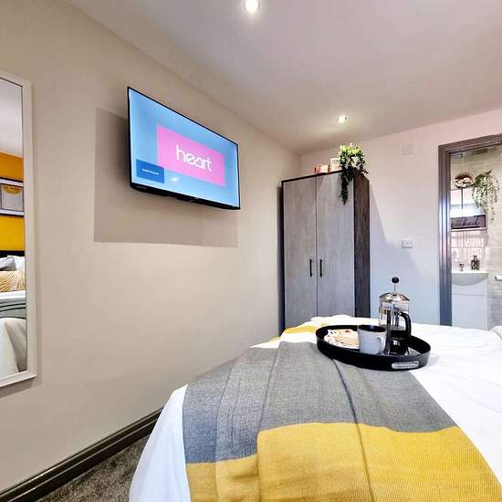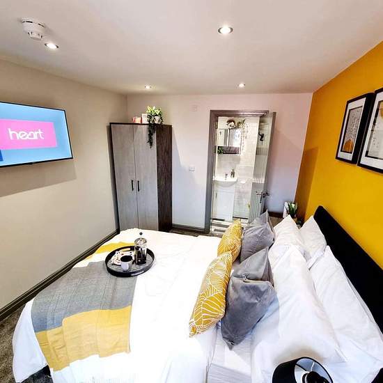 Zimmer 4 ist ein wunderschönes, frisch renoviertes Zimmer im ersten Stock, in der Mitte des Hauses. Es ist komplett möbliert und verfügt über ein Doppelbett, einen Kleiderschrank, eine Kommode, einen Schreibtisch, einen Stuhl und einen 40-Zoll-Smart-TV. Dieses Zimmer hat außerdem ein eigenes Bad (En‑suite). Willkommen im Haus, von dem Sie immer geträumt haben! Dies ist nicht nur ein Ort zum Wohnen — es ist ein Upgrade Ihres Lebensstils. Machen Sie sich bereit für ein brandneues, komplett renoviertes 6-Zimmer-Haus, bei dem jedes Detail für ...
