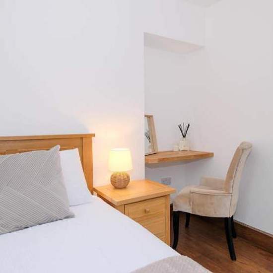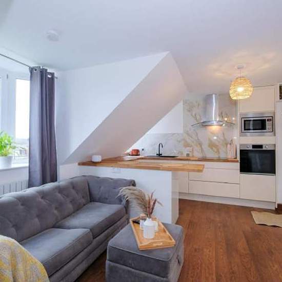 Stylish One-Bedroom Flat to Rent – Bucksburn, Aberdeen (AB21) A beautifully presented, recently fully renovated and fully furnished one-bedroom apartment, located in the popular and well-connected area of Bucksburn, Aberdeen. Property features: • Bright open-plan living and kitchen area • Modern, fully equipped kitchen with integrated appliances and ample storage • Cosy living space with a comfortable sofa bed • Charming wood-burning stove set in a stone fireplace, creating a warm and welcoming atmosphere • Modern bathroom w...
