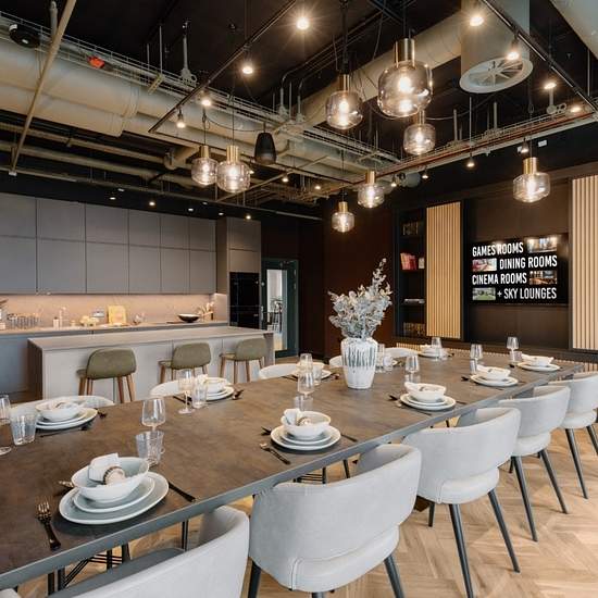 15% off your rent for 6mths Moda, Loudon's Yard offers 398 brand-new, interior-designed rental homes with state-of-the-art amenities, including a 24-hour gym, co-working space, private dining room, concierge, security, and a one-acre landscaped garden. Residents also benefit from secure parking, cycle storage, free superfast Wi-Fi, pet-friendly options, and deposit alternatives for a hassle-free move-in experience. The sleek open-plan kitchen includes quartz worktops and energy-efficient integrated appliances. The dining area has a marble-e...