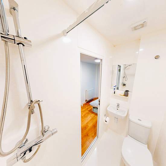 Our ensuite rooms at The Cube are fully furnished with a small double bed, complete with under-bed storage, wardrobe, full length mirror, individual study area and private bathroom. Offered as part of a 6 bed flat, the ensuite rooms share a cosy living space, along with a modern kitchen equipped with fridge-freezer, oven, hob and microwave. In room: Ensuite shower and toilet Small double bed Wardrobe Desk & chair Full length mirror WiFi Bills included Key card access In cluster: Fridge freezer Oven with 4 ring hob Microwave Breakfast bar Cos...