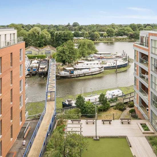 One Bedroom Apartment Open-Plan Kitchen Reception Balcony Two Allocated Parking Spaces Riverviews Occupying a prominent riverside location in the heart of Brentford is Malthouse Court, this one bedroom apartment on the fifth floor. Boasting an impressive open plan layout and balcony with far reaching views of the River Thames, this apartment is perfect for contemporary, versatile living and entertaining. Arranged on the fifth floor, accommodation comprises a large open plan reception room and kitchen, double bedrooms, bathroom, balcony ...