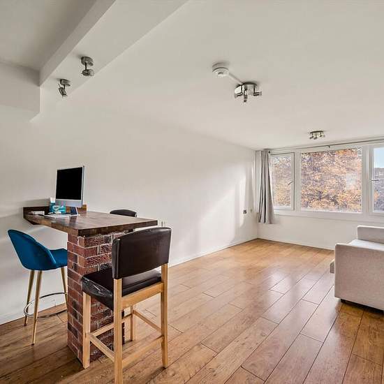 This well-appointed apartment offers a bright and open reception room, thoughtfully divided into living and dining areas with a sleek breakfast bar, ideal for both entertaining and everyday living. The fitted contemporary kitchen is seamlessly integrated, while hard wooden floors run throughout, enhancing the sense of space and light. The generous double bedroom benefits from ample built-in storage, and the contemporary bathroom features a large walk-in shower, combining comfort with modern design. Gas and central heating are included in the...