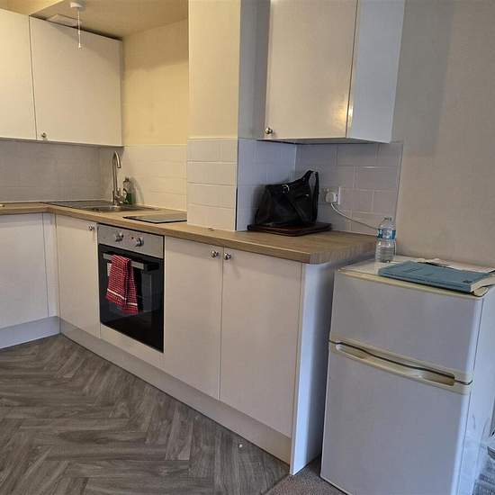 Unfurnished. Convenient Location. Open Plan Kitchen/Living Room. Gated Entrance. Suitable for Professional Single. No Pets/Children Considered. Deposit £774. Available Early March. Council Tax Ban A. Tenant Fees Apply. ACCOMMODATION TO INCLUDE A wooden security door opens up to carpeted stairs leading to the 1st floor, door to the right leading to the Flat 1 entrance. A solid wooden door opens on to ENTRANCE HALLWAY With fully fitted brown carpet flooring, pendant light, two mains fuse boxes and 1 wooden plinth with coat hooks. A wooden pan...