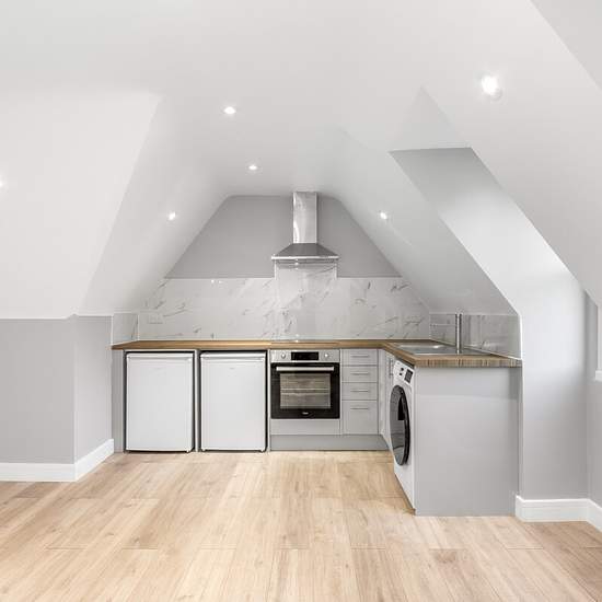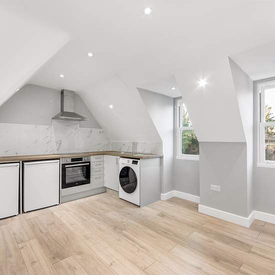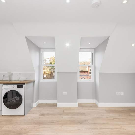 Discover modern living in this newly converted block of three flats, showcasing impeccable contemporary design. Situated on the top floor (third floor), this spacious 1-bedroom flat spans 491 sq feet and offers a welcoming entrance hallway leading to a bright reception room. The open-plan kitchen, complete with integrated appliances, adds functionality and style to the living space. The accommodation further includes a generously sized double bedroom, and a luxurious shower room bathroom. Finished to exacting standards, this apartment boasts...