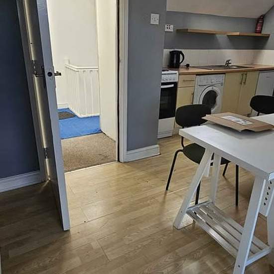 Cosy 1 bedroom apartment on the top floor. Comprising of a Galley Kitchen- Diner-Snug Area. Fridge. Washer/Dryer and Electric Cooker. Separate Double Bedroom with Bed and Matress. Large Wardbrobe. Door leading into a good sized shower room. Corner Electric shower wash basin and toilet. Gas central heating throughout. Would suit working professional. Rent is £750 per calendar month. Bills not included. £750 deposit and first months rent in advance. No pets or smokers. Empty and ready to go.