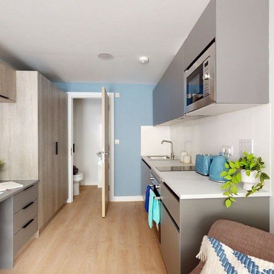These thoughtfully designed studios range from approximately 17.6m² to 19.7m², offering a comfortable and practical living space tailored to student life. Different options available! What's included in your studio: Comfortable double bed (4ft x 6ft) Spacious study desk and chair Private TV Large wardrobe and shelving for ample storage Modern en-suite bathroom with a generously sized shower Fully equipped private kitchen with oven/grill, hob, and extractor Microwave Fridge/freezer All bills included, making budgeting simple and hassle-free. ...