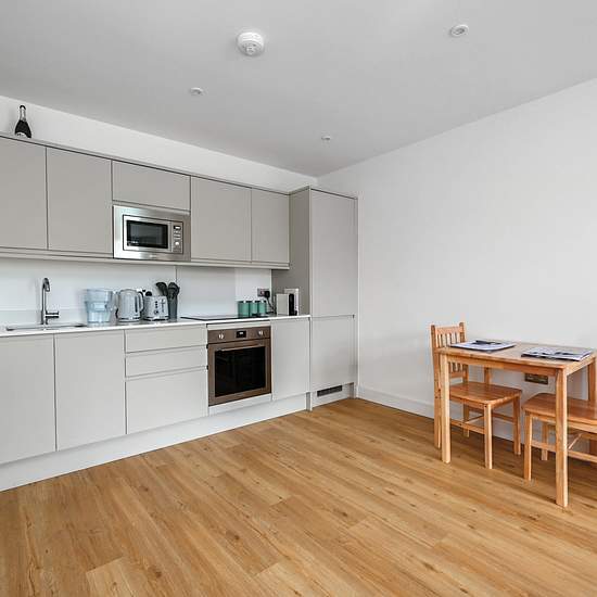 Modern One Bedroom Apartment with Balcony. Available 1st February 2026. Positioned on the first floor of the desirable Hillside Place development, this beautifully presented one-bedroom apartment offers an exceptional standard of modern living combined with a central Farnborough location. The apartment features a stunning open-plan kitchen/living area with full-height windows and doors that flood the space with natural light and open onto a generous private terrace – perfect for outdoor dining or relaxing with views over the treetops and roo...