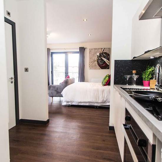 ***inclusive of gas, water & electric*** Bespoke luxury 1st floor studio apartment in a centrally located stunning development. Ideal for both students and professionals with a train station and bus stops right on your doorstep providing links to the city centre and beyond. Your apartment will be furnished to a high standard including a king size bed, wall mounted TV, handpicked artwork and modern fully fitted kitchen with washing machine and tumble dryer. We will save you the hassle of setting up your utility bills so sit back, relax and en...