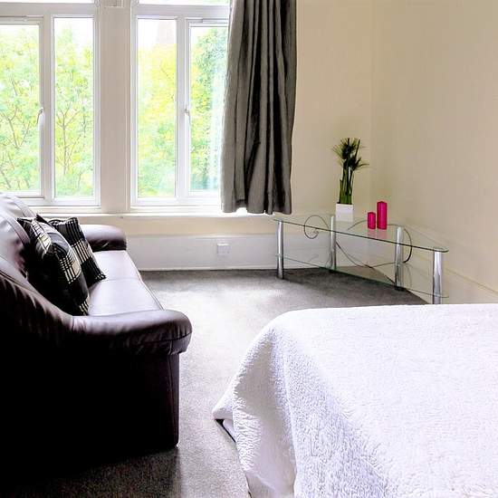 First floor studio which has been newly re-decorated throughout. Two marvellous arched Victorian windows overlooking lots of greenery with lovely high ceilings and views over Kirkstall Valley. Living bedroom with double bed. Large fitted kitchen with dining area. Tiled shower room. Large maintained gardens and a car park to the rear. Beautiful, quiet area. * * * Central heating included in the rent * * *Ideal for Student and Professional Accommodation