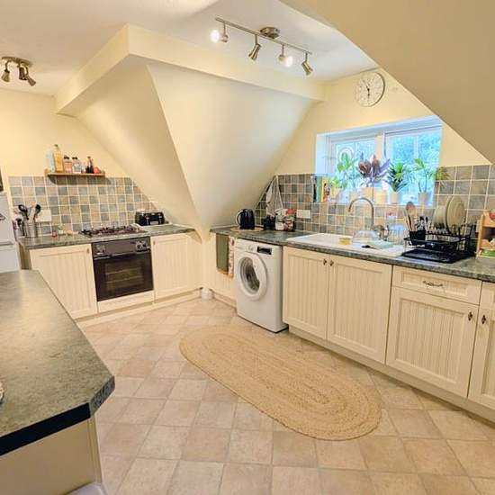 A charming one-bedroom top-floor apartment set within a converted Georgian school, surrounded by landscaped grounds and ample communal parking in a quiet cul-de-sac on the edge of West End Common. The property offers generous storage, including loft access, a basement store, and multiple internal cupboards. Inside the original building, a characterful reception hall with wood block flooring and a sweeping staircase leads to the apartment, which features a homely feel, security entry system, and access to well-maintained communal gardens. Pr...