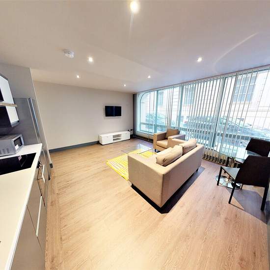 A spacious fully furnished apartment that offers a fitted kitchen with integrated appliances, bathroom, large bedroom and a fabulous living area. The development is located on Rumford Street and gives easy access to everything that the City Centre has to offer. Available from March Council Tax Band B