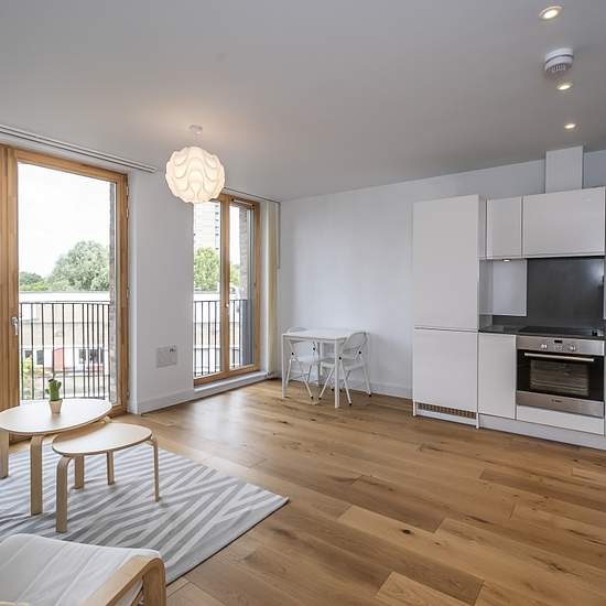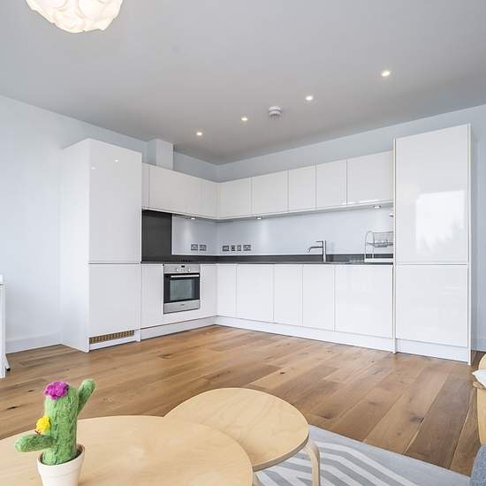 Step into this beautifully designed, light-filled modern flat, where floor-to-ceiling windows create a wonderful sense of space and warmth throughout. The home boasts a private balcony, perfect for relaxing or entertaining, and a sleek contemporary kitchen complete with high-quality integrated appliances. A generously sized double bedroom features elegant fitted wardrobes, while the fully tiled, luxury bathroom has been finished to an exceptional standard. Stylishly furnished and thoughtfully decorated, this property combines modern living ...