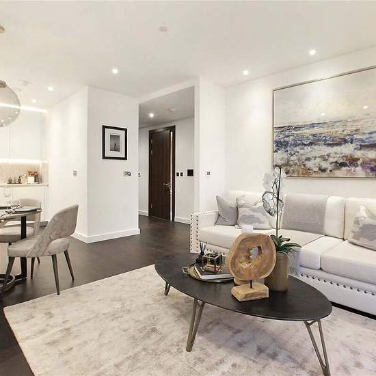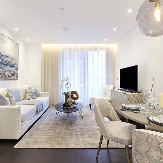 A luxury one bedroom apartment enviably located in the heart of Nine Elms and within a stones throw of the American Embassy. The brand new, modern apartment is finished to the highest of standards throughout, also boasting branded appliances in the kitchen and a private balcony with widespread views across London. For the residents enjoyment and comfort, the wider development offers; 24h concierge, a bookable media room and board room, communal landscaped gardens and included access to the fully equipped on site gym. An added benefit for res...