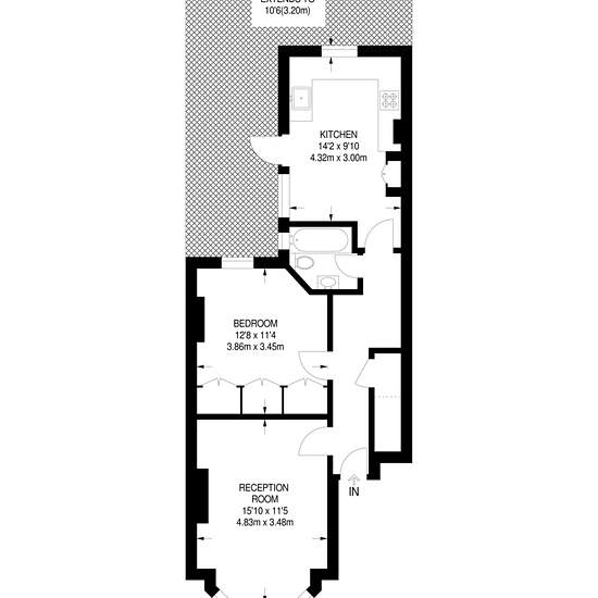 Bright and spacious reception room with feature fireplace Wonderfully equipped eat-in kitchen Good-sized double bedroom with fitted wardobes Excellent location for transport links and amenities Charming patio garden Available with Zero Deposit Set within a wonderful period conversion, this gorgeous 1 bedroom ground floor flat is presented in superb condition throughout and offers ample living space with lovely period features and private garden. Hackford Road is a quiet residential road within easy reach of a wide range of amenities on offer...