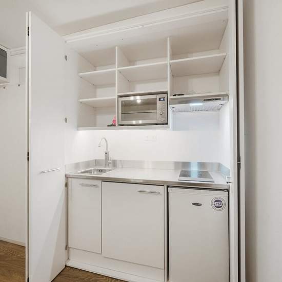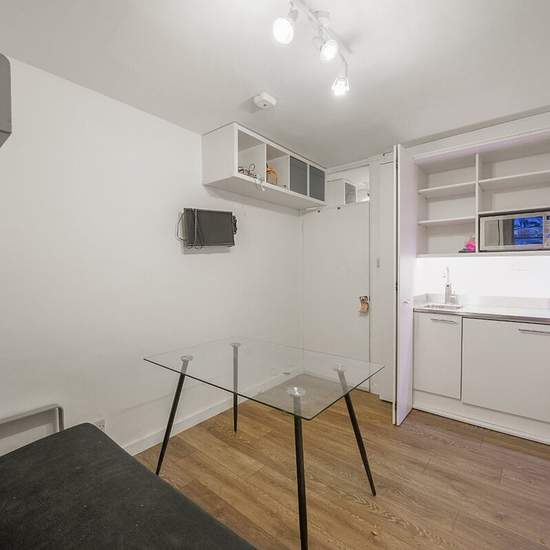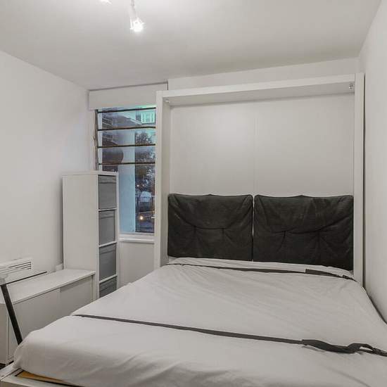 A compact studio apartment on the first floor of a purpose built block, close to St John's Wood Station and High Street. The property comprises a studio room with murphy bed, and kitchenette neatly hidden behind cupboards, a small entrance hall and a bathroom with full sized bath and shower over.