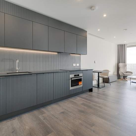 Premium, design-led apartments, equipped with all you need for spectacular living. This modern 1 bedroom apartment includes a large open plan living and kitchen area, a spacious bedroom, and a separate main bathroom. The apartment also benefits from two Juliet balconies, under-floor heating and an air-cooling system. Entertain in stylish, ergonomically designed kitchens featuring high-end appliances. This exceptional apartment comes fully furnished and features a modern open-plan kitchen living area with floor-to-ceiling windows. With excep...