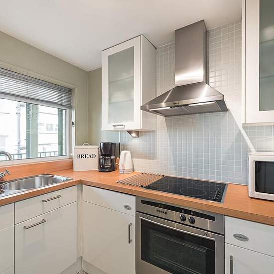 The apartment consists of a spacious double bedroom with air conditioning, reception room with dining area, Smart Tv and a full size bathroom with power shower. There is a separate fully equipped kitchen that contains a washer/dryer, under the counter fridge with freezer compartment, a hob oven and microwave and various cooking implements. All apartments in the building have secondary glazing, 24hr heating & hot water and benefit from onsite property management and lift access. There is an additional cost of £75 per week which covers gas, el...