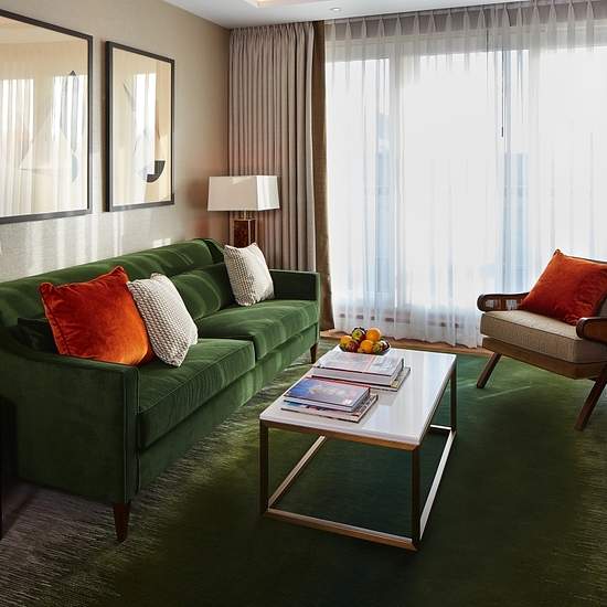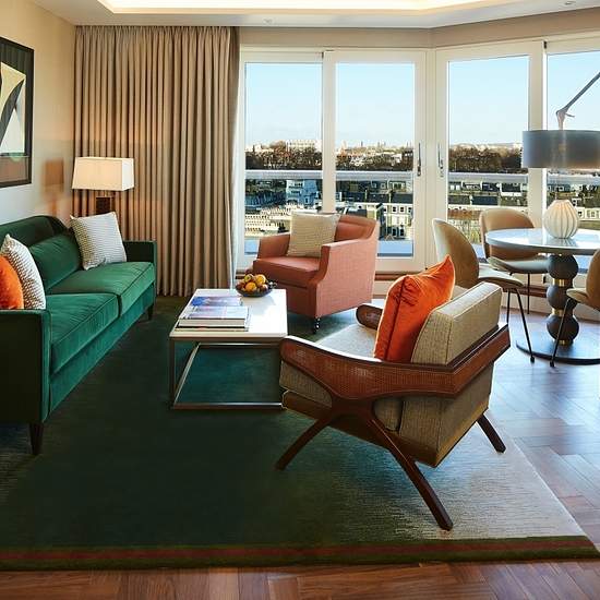 These spacious apartments include a generously-sized reception area and feature either city or garden facing views from the private balcony. It has a fully fitted kitchen with modern Miele appliances as well as a Nespresso machine with capsules and takeaway cups. The bedrooms include a King-size bed, dressed in high-quality linen and pillows, plenty of storage and the en-suite bathroom comes with a shower cubicle stocked with complimentary toiletries from L'Occitane. There is an additional guest cloakroom in the hallway for the convenienc...