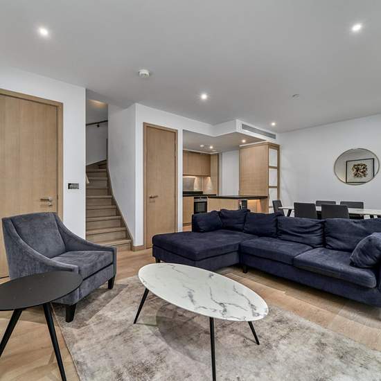 Available: Now A rarely available two bedroom town house in the brand new prestigious Embassy Gardens development. Situated over three levels, this large two bedroom property offers luxurious living space featuring floor to ceiling windows, a spacious open plan reception room, fully fitted kitchen, two double bedrooms and 2 luxury bathrooms (2 en suite), WC and a good size roof terrace. For the residents private use there is a 24-hour concierge, cinema screening room, library & lounge, business center, yoga studio, 2 private gymnasiums and a...