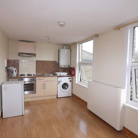 A well-maintained studio, part of a house conversion, offers a perfect blend of contemporary features and practical design, ideal for a single person. Upon entering, you are greeted by a bright and inviting living area, characterised by stylish laminate flooring that extends seamlessly throughout the entire studio, creating a cohesive and easy-to-maintain environment. The compact yet intelligently designed layout maximises every inch, ensuring a functional and comfortable home. The fitted kitchen, though modest in size, is remarkably efficie...