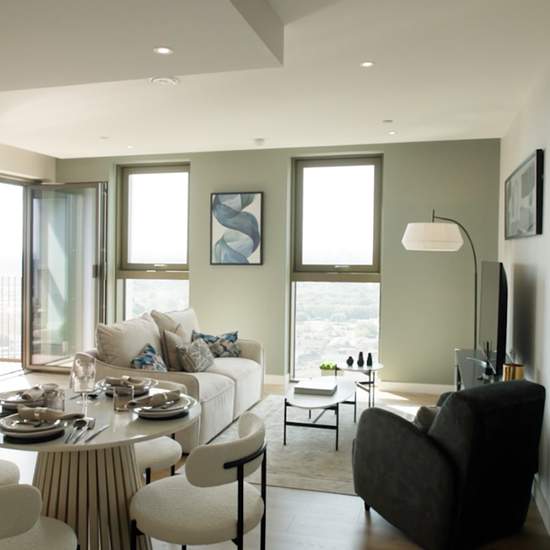 Situated on the 32nd floor of the prestigious One Thames Quay development, this beautifully presented one-bedroom apartment offers elevated living with breathtaking views across Canary Wharf and the London skyline. The apartment comprises a well-proportioned double bedroom, a contemporary bathroom, and a bright open-plan kitchen and living area leading onto a generous and highly practical private balcony. From this height, residents can enjoy far-reaching views over the docks and surrounding cityscape, creating a striking backdrop both day a...
