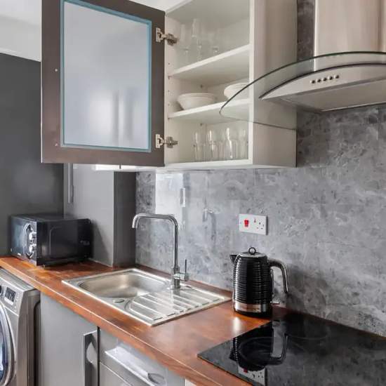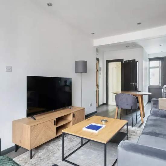 This fully furnished 1-bedroom apartment in London offers comfortable living. It features an equipped kitchen with an oven and a private washing machine. The apartment includes central heating and has a TV for entertainment. Additionally, all utility bills are included for your convenience. Located in London, this property is close to various points of interest, including The Sherlock Holmes Museum, the Elizabeth Bowen Blue Plaque, and Marylebone Station, among others. The vibrant surroundings provide access to historical sites and local lan...
