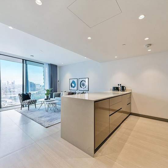 A modern apartment to rent in the One Blackfriars development. With floor to ceiling windows, natural light floods through, with a winter garden running along the side of the apartment. The kitchen/reception room is open plan, with with state of the art appliances including oven, coffee machine and bottle cooler. The bedroom is adjacent to the living room and has plenty of storage space whilst the bathroom is tiled throughout. The apartment features the latest in home technology, including a Sonos speaker system and iPad controlled lighting ...