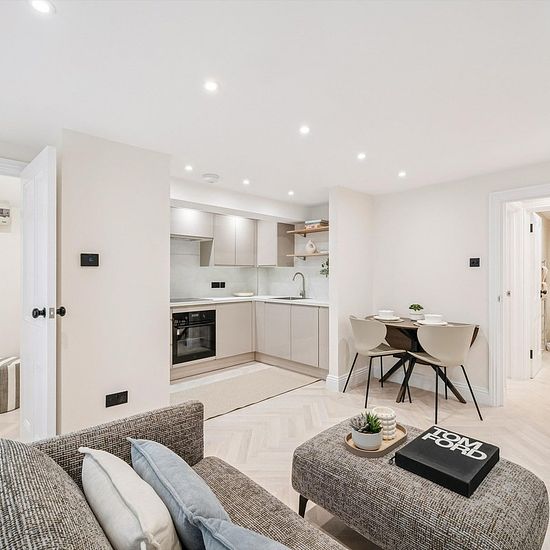 Positioned in a vibrant part of London, this modern one bedroom apartment offers approximately 414 sq ft of stylish living space. Located on the lower ground floor of a five-storey building, it comprises an open-concept layout that seamlessly connects the living area to a sleek kitchen with stainless steel appliances. Large windows allow natural light to flood the space, creating an ideal environment for relaxation and entertaining. The bedroom is designed with soft hues and a minimalist style. The elegant bathroom features modern fixtures, ...