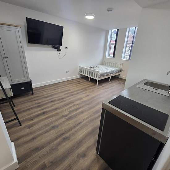 Town centre Studio apartment Fully furnished Utility bills incl except council tax Kitchenette En suite shower room Epc rating b Flat screen tv Council tax band a Communal chill-out lounge read more show less **Zero Deposit Guarantee Available** Newly refurbished modern studio apartments in the heart of Middlesbrough town centre and close to Teesside University. Refurbished to a high standard throughout this studio provides self-contained accommodation including en-suite shower room and kitchenette. Fully furnished and flat screen TV. All u...