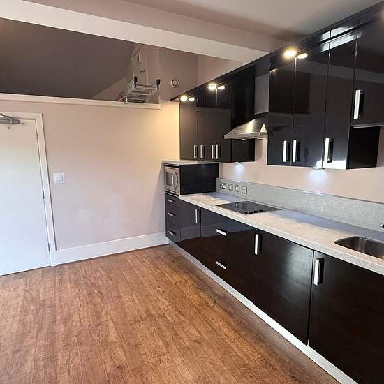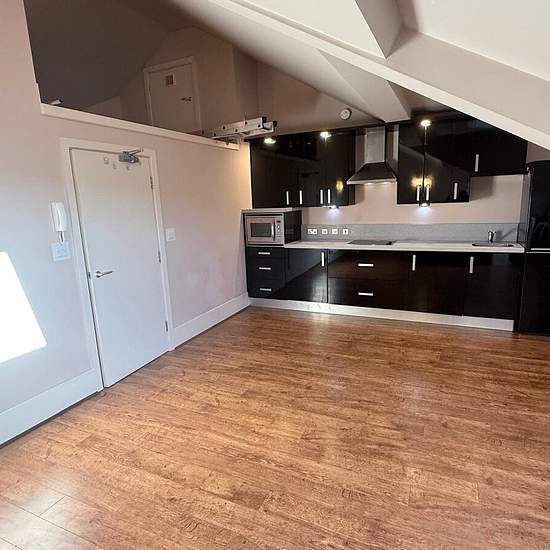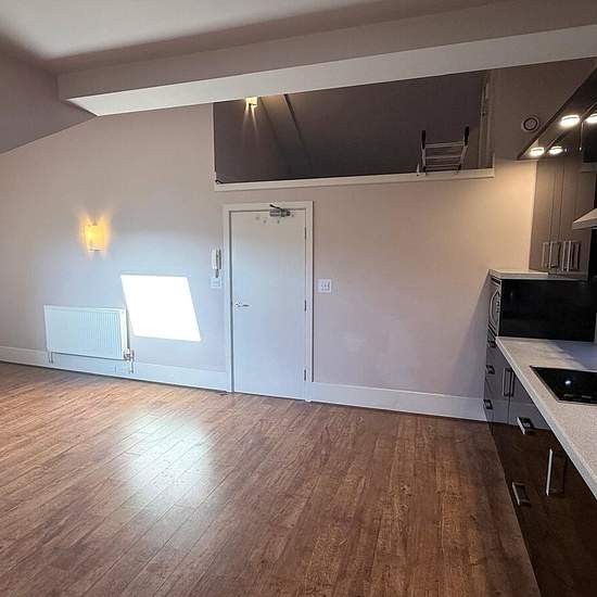 Holroyd Miller have pleasure in offering to Let this FOURTH FLOOR one bedroom apartment, having EXCELLENT VIEWS over adjacent countryside, yet located close to Mirfield Town Centre. Entrance Hall Lounge 13'7" (4.15m) x 18'6" (5.65m) (lounge area). Open plan lounge kitchen area with Velux roof light, central heating radiator, wall lights, intercom system, mezzanine storage level with ladder. Kitchen 14'6" x 10'1" (4.42m x 3.07m). Fitted with a range of black wall and base units, contrasting work surfaces and upstands, inset sink unit, electri...