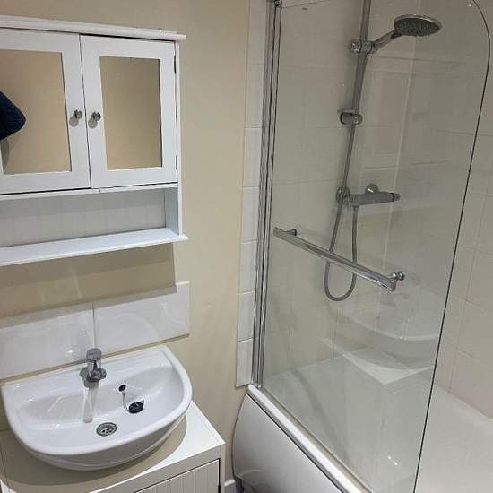 1 Bedroom flat unfurnished to rent in the village of Whitecraig. 1st floor with fully fitted kitchen with white goods. Double bedroom with fitted wardrobes. Large bright lounge. Bathroom with shower over bath. Gas combination heating/hot water, double glazing. Private off street parking, entry phone.