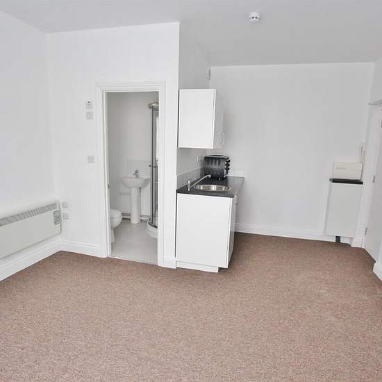 studio with kitchen and shower. These are lovely bright, modern studio that are offered unfurnished on a long term basis. This convenient location is just a short walk from local shops and a is on a main bus route to town. It is a studio with a bathroom and shower and with a kitchen corner, countertop with a sink under which there is a space for fridge and washing machine. Its available for one full time working person only, the minimum income to pass a reference is £22k per annum. The rent does not include water and electricity which is on ...