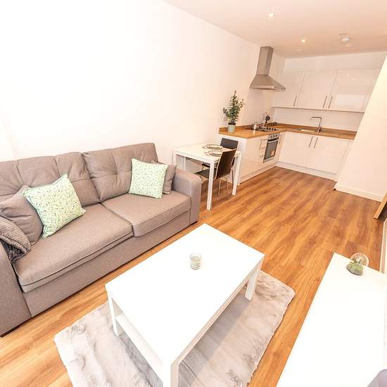 Onsite gym open 24/7 Overnight security Washer/dryer Walking distance to Media City Opposite Salford Quays Metrolink stop Close to local shops, bars and restaurants Introducing this stunning one-bedroom first-floor flat, located in a prime residential area. This beautifully furnished property offers a perfect blend of contemporary style and comfort. The spacious living area is ideal for relaxation and entertainment, with large windows allowing plenty of natural light to fill the space. The bedroom provides a peaceful sanctuary, with ample st...