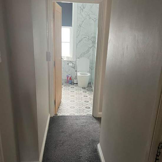 Delightful first floor flat recently refurbished, communal entrance hall leading to stairs to the flat on the first floor, passageway into large lounge with bay window and walls decorated in light grey, Modern fitted kitchen with split level oven and hob, cooker hood and light grey units. Space for washing machine and fridge. Sink with mixer tap, window overlooking the cricket field. Light and bright. Double bedroom with window and decoration in grey. Modern newly fitted shower room with double shower, WC and washand basin in white. Feature...