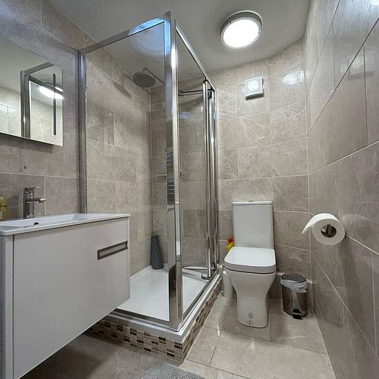 The apartment is situated in the center of Stratford-upon-Avon and is available Now. Access to the apartment is through a shared hallway. Upon entering, you are greeted by a spacious open-plan kitchen and lounge area. The kitchen features integrated appliances. The lounge is bright and tastefully decorated in neutral tones. A door at the rear of the apartment leads to the master bedroom, which is generously sized and offers ample space for additional furnishings. The ensuite shower room is equipped with a contemporary white suite, including...
