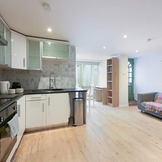 This one bedroom basement flat is located close to Teddington High Street. The property offers an open plan lounge/diner/kitchen with direct access onto a private courtyard, one double bedroom and a bathroom with shower over the bath. Waldegrave Road is a popular location which is less than a mile to Teddington train station, High Street and Broad Street where there are plenty of shops, bars and restaurants for you to choose from. Offered part furnished with sofa, desk and double bed base and headboard. Available now. EPC C Council Tax B Thi...
