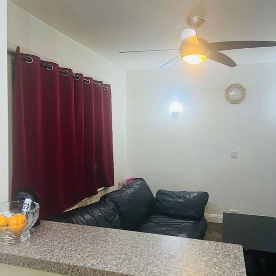 One bedroom flat. Open plan living room with dinning and kitchen. Separate wc and bathroom with bath tube. Emergency exit .Fully furnished. Long term.Huge garden and parking space. Available 8th of March 2026. Private.