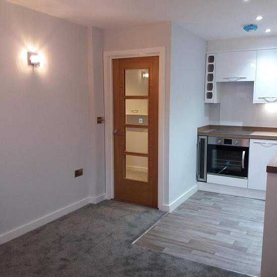 A modern 1-bedroom apartment located within an exclusive smart development of ten luxury apartments. This first-floor apartment has its own front door, with letterbox and spyhole. Front door is directly off the communal hallway. The apartments internal hall has an intercom door release security system to supervise entrance into the ground-floor communal lobby and stairway. The apartments internal hall has doors to spacious living room & kitchen, double bedroom and a Wickes bathroom. Double-glazed windows with anthracite grey exterior and whi...