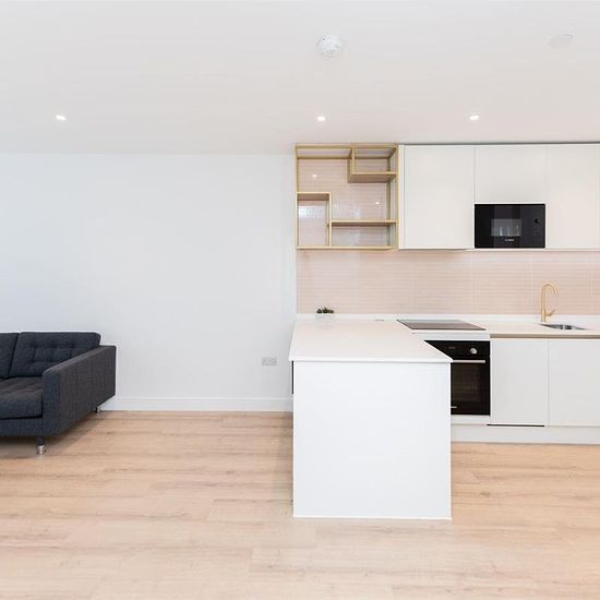 Waterview House | 5th Floor | 1B1B | Modern Open-Plan Living | Contemporary Kitchen Set on the 5th floor of Waterview House, this one-bedroom, one-bathroom apartment offers stylish, low-maintenance living in a well-connected London location. The bright open-plan living and dining area is filled with natural light from large windows, creating a warm and inviting atmosphere. A sleek, modern kitchen with integrated appliances provides both functionality and elegance. The spacious double bedroom includes built-in storage, and the well-appointed ...