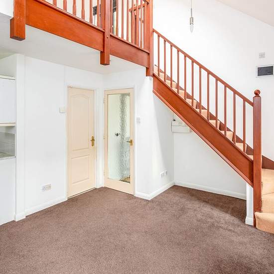 Side Entrance Porch with outside storage cupboard Entrance Lobby Open plan Living Room to Kitchen Study Kitchen with white goods Galleried Bedroom Bathroom/WC with shower over bath Private Rear Garden Parking for 2 cars in Tandem Gas central heating and Double glazing A one Bedroom cluster house with a ground floor study , open plan living room and Kitchen and galleried bedroom with en suite bathroom/WC, gas to radiator heating and double glazing, brick built outside storage cupboard and private rear garden, Off street driveway parking for ...