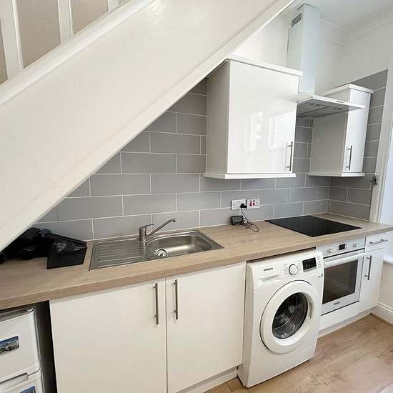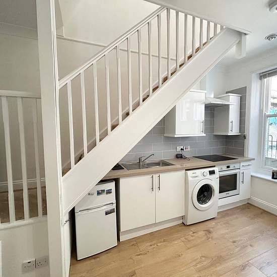 Zero Deposit Guarantee Available Situated in Bournemouth town centre, with easy access to the high street with its extensive range of restaurants and leisure facilities, as well as the award-winning sandy beaches. Upon entering the property you are located in the kitchen/living area, this is of a good size, and there is a large window allowing natural light. Kitchen is fully fitted and includes, electric oven and hob, washing machine and fridge/freezer. Living area includes black sofa bed. On the first floor is the bedroom with, en-suite ...