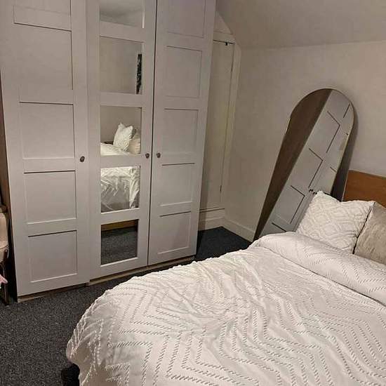 - Fully furnished double room in house share (comes with double storage bed, mattress, 3 door cupboard, desk, side drawer, chest of 3 drawers) - Additional ensuite storage room - Fire door and frame (fd30), smoke and Carbon monoxide alarms inside room and cabinet/storage room. - Living room and breakfast area - 1 bathroom with toilet and 1 toilet - Large garden (with decking) to the rear - Close to station and stadium - Rent includes all bills - 1 month deposit only and zero admin fees - Parking available - High speed internet available - TV...