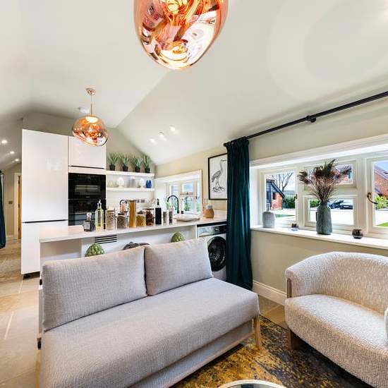 Unfurnished/Fully Furnished. A newly converted one double bedroom detached barn set in a private gated development located in the heart of Burpham Village and minutes from the A3 and M25. The barn has a light and airy entrance hall with stone underfloor heating throughout and leads into a triple aspect open plan kitchen with high end integrated appliances and breakfast bar. There is a generous reception room with ample dining space and views over the garden, large double bedroom with garden views and a stunning marble bathroom with high end ...